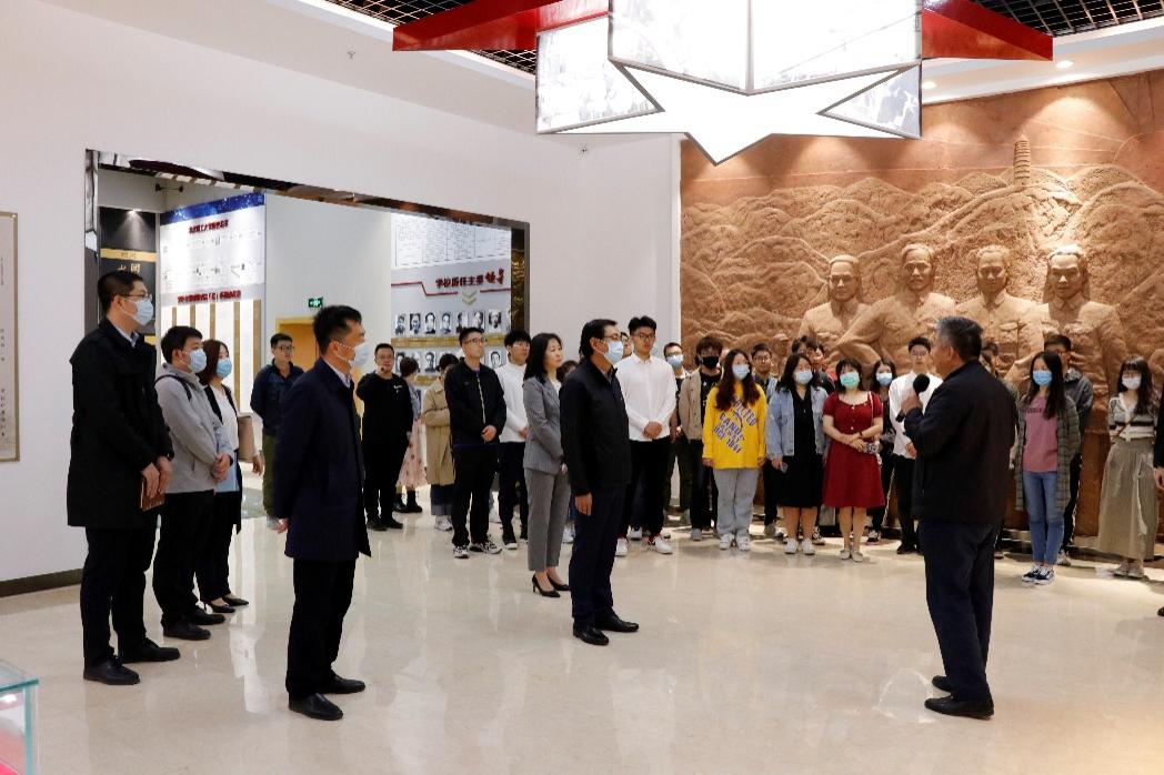 包丽颖陪同次旺平措一行与同学们共同参观了校史馆,校史馆馆长王民详细介绍了学校的历史沿革、发展历程、办学特色,大家共同感受了北理工“延安根、军工魂”的红色基因和熠熠生辉的“红色育人路”。