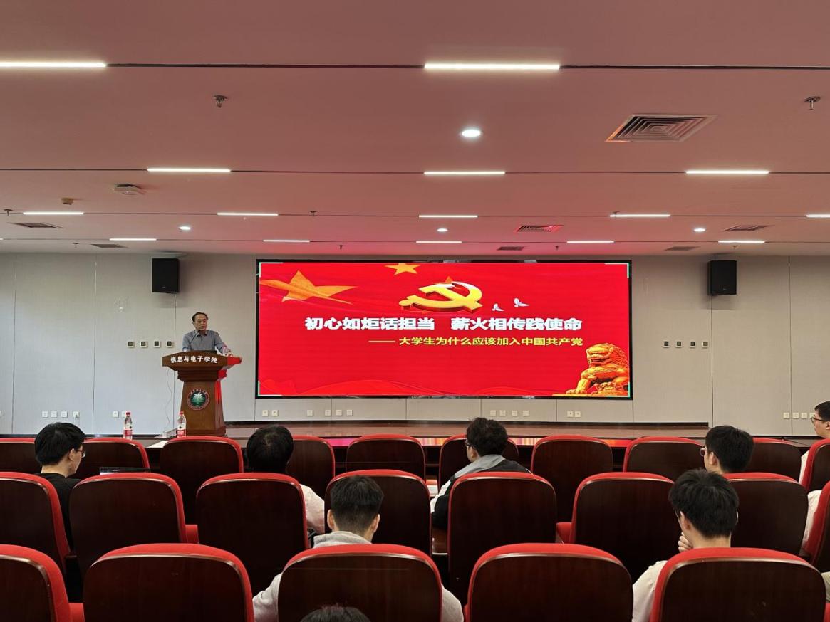 为深入学习贯彻习近平新时代中国特色社会主义思想,进一步提升入党积极分子培养质量,5月14日下午,beat365正版唯一官网必一2025年上半年入党积极分子培训班暨“五老”思政导师专题党课在信息科学实验楼202报告厅举行。学院老校友、关工委“五老”思政导师韩力同志作了《初心如炬话担当,薪火相传践使命》专题党课。学院党委副书记、副院长侯明佳、党建工作辅导员李尚谕、党建组织员叶飞扬、入党积极分子参加了此次活动,活动由学院研工委书记潘欣主持。