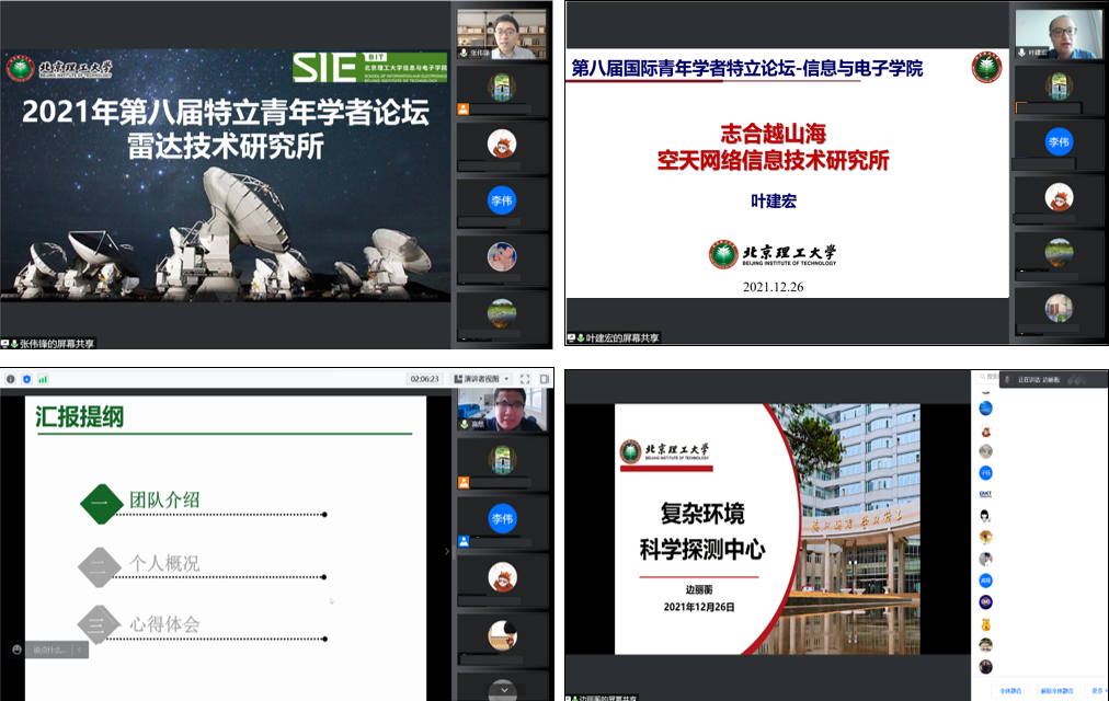 学院青年教师代表张伟锋教授、叶建宏教授、高然教授、边丽蘅副研究员均以个人科研工作为出发点,对学院、团队以及个人的成长经历分别做了细致入微的分享和汇报。他们认为,学校和学院为优秀青年人才提供了良好的发展环境和全方位的支持,各位青年学者可以在北理工充分发挥自己的才能,将个人奋斗融入到社会发展的时代潮流中。