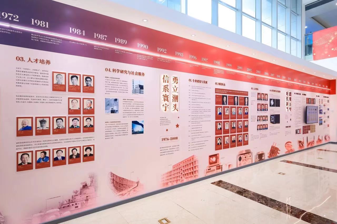 同学们首先参观了学院“信息寰宇 时代担当”展厅。展厅以学院70多年发展的四个重要历史阶段为脉络,从学科发展、师资队伍、人才培养、科学研究四个领域,全方位展示了学院的发展状况及取得成绩。
